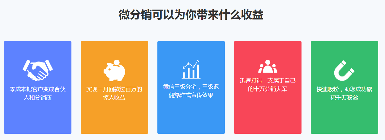 微分銷是一款"微商城+微分銷"微信分銷社交電商平臺,基于朋友圈的傳播, 輕松帶領成千上萬的微信用戶一起為您銷售商品。